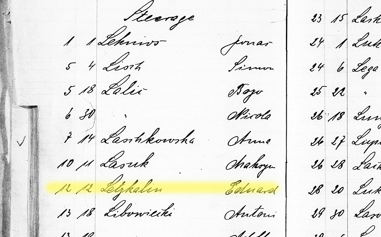 SS Pennsylvania Manifest log listing passengers traveling in steerage. The SS Pennsylvania sailed out of Hamburg Germany March 23, 1912.