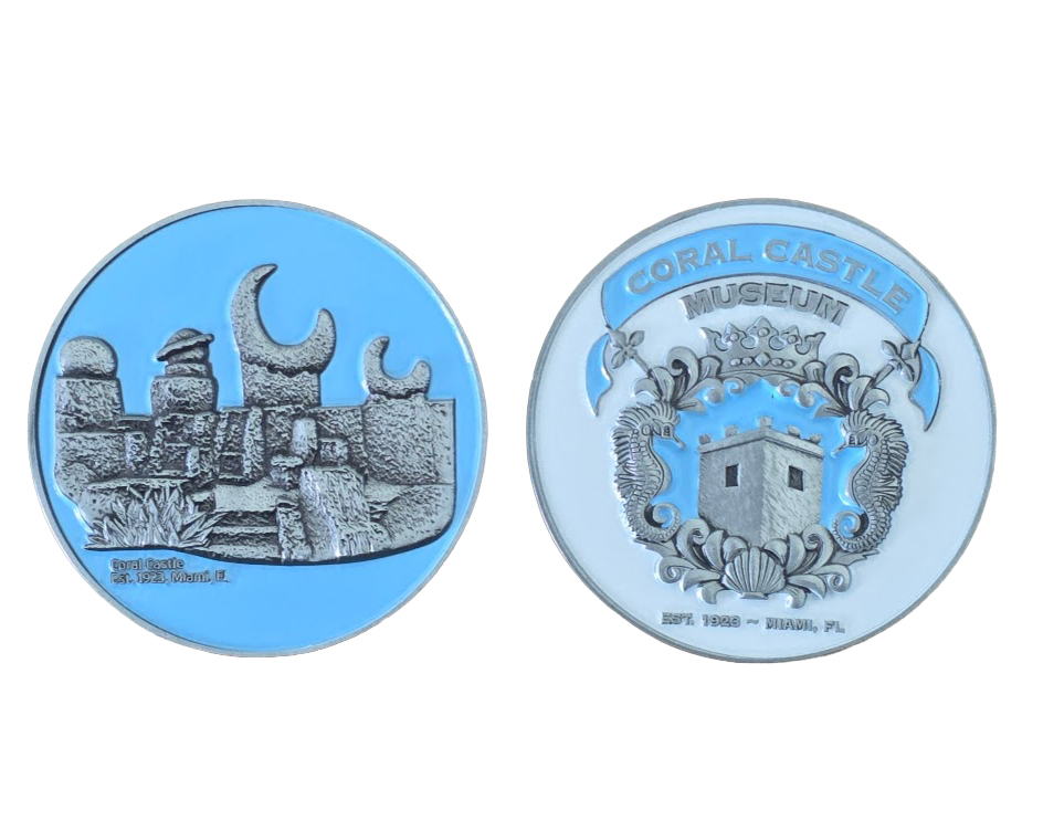 A collectible souvenir coin that honors the engineering mystery and celestial themes of Edward Leedskalnin’s stone masterpiece.