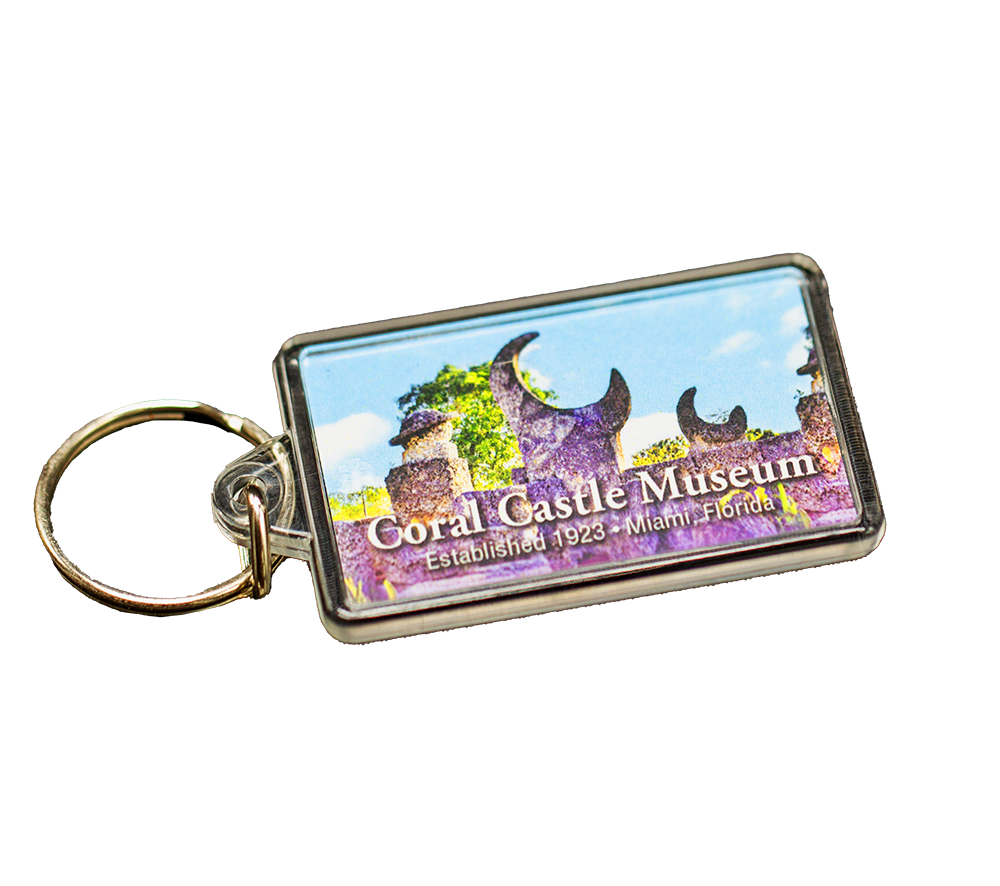 This rectangular, double-sided acrylic keychain is a stylish souvenir that offers both a visual and historical tribute to the iconic Coral Castle landmark. Perfect for everyday use or as a keepsake for fans of the site’s enduring mystery.