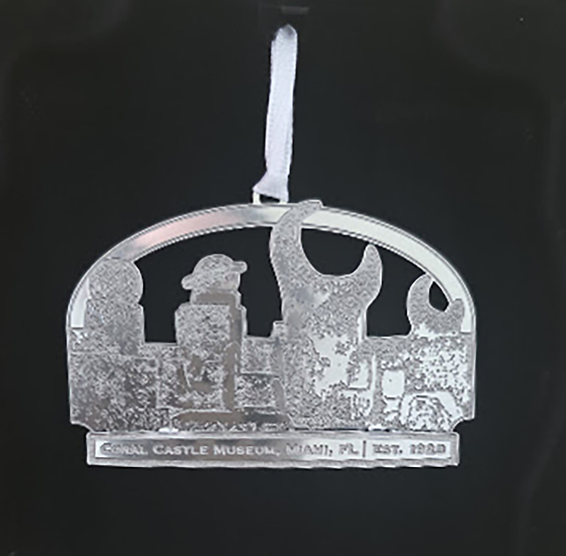 The Coral Castle Museum Signature Ornament brings the mystery of Florida’s Stonehenge to your home in this exquisite metal commemorative ornament. This collector’s piece beautifully combines a textured metal base with accents to highlight the legendary engineering of Edward Leedskalnin.