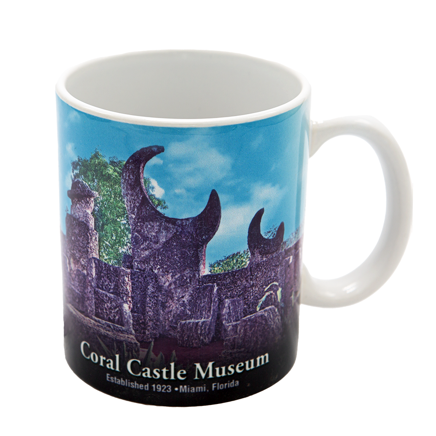 Own a piece of Florida’s “Modern Stonehenge.” This high quality ceramic mug features a vibrant wrap around photo of the legendary Coral Castle, hand sculpted by Edward Leedskalnin starting in 1923.